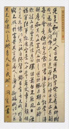 这对于一位普通书家而言是很难做到的,尤其是在当下!这些宝贵的艺术经验犹如泼在生宣上的水墨,虽缓缓地渗入,但却力透纸背,因此赋予了阎景山老师特色鲜明的创作风格,人谓,日有秋冬春夏,月有阴晴圆缺,人有喜怒哀乐,然而,无论何时何地、何年何月,我们终会看到并理解真正优秀的书者为艺术创作而付出的艰辛与不易! (郑启轩)