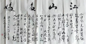 蒋文焱老师的作品浓淡相宜,重笔和淡笔混合 运用,层次分明,起伏连贯, 每篇布局都独具匠心,有一 种高古穆朴,气概而康的感 觉,于平和中见灵动,于端 庄中见秀丽,于点化中见法 度,意境超然,品意携永。他 的这种笔墨之外的人文内 涵,才情功夫可说是大家风 范所独有的!仁者见仁,智 者见智,法者见法;但能够 让人叹奇乐道的才是上品 之作。蒋文焱老师在传承了 多家之长,聚一家之体,打 破了别人的书写模式,笔墨 与章法的处理引入了构成元素,使人们在欣赏与玩 味笔墨的同时,还能感念到字面以外的意境,没有 刻意雕琢,完全自然流露。