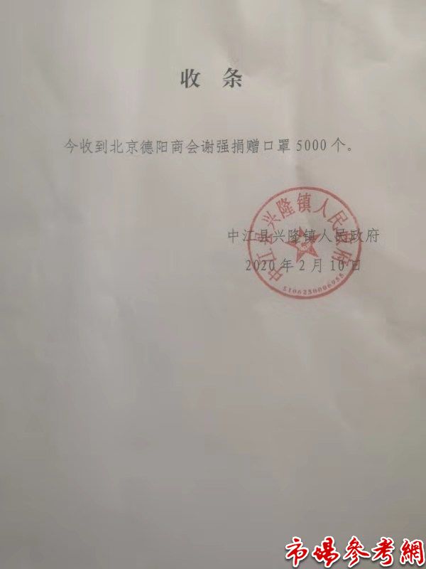 本次共捐现金7.1万元,捐赠口罩3.5万只,价值13.35万元。口罩已通过中江县经济合作和外事局送达中江县红十字会,现金已由名誉会长杨明玖通过招商银行汇入了中江县红十字会专户。上述18位爱心人士,牢记我们党的“初心和使命”,急国家之急,想国家之想,在危急关头,勇于承担社会责任,他们不仅是家乡的骄子、企业的楷模、更是大家的榜样。(特约记者/秦明观 市场参考网受托首发 转载请注明出处)