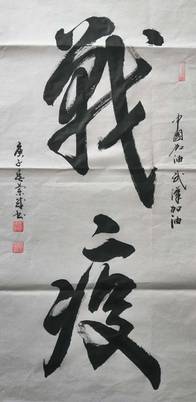 中国丝路新闻网讯(记者李广义报道)庚子年初,突如其来的由新型冠状病毒感染的肺炎疫情,打乱了人们的正常生活,全国各地的白衣天使纷纷请缨奔赴武汉抗疫一线,为防止疫情在全国蔓延,各地政府严防死守,全国人民响应政府号召自觉待在家里,以阻断病毒传播。在此期间,实力派书法家李兰成先生并不是吃了睡、睡了吃,他一刻也没有闲着,拿起手中的笔,静下心来创作出一幅幅颇具收藏价值的书法作品。他把其中有很大一部分是具有现实意义的“抗疫”作品,不仅寄到“抗疫”一线,而且送到当地值守卡点的工作人员手中。他这种无私奉献的精神,受到“抗疫”前线“将士”的好评。