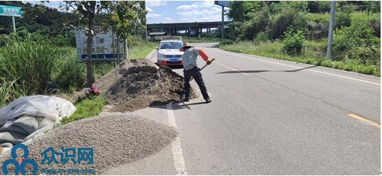 大队领导带队在国道212线多扶场镇涉路施工路段现场办公