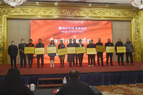 区餐饮(商)协会副秘书长、重庆市骏沃餐饮管理有限公司总经理文波宣读了获得“年度行业模范奖”的获奖名单。区市场监管局副局长文何伟,区商务委党委委员、副主任敖兴兵,区消防支队副支队长廖建伟,重庆市江湖菜促进会会长曾清华,重庆涪陵商会会长黎绍华为获得“年度行业模范奖”的涪陵玉积餐饮有限公司,蓝花旗餐饮,城门老火锅,金洲大饭店,皇宫假日酒店,重庆众涪盈商贸有限公司,七堂格赵六烤全羊,风情天鹅寨,重庆七澳餐饮有限公司,杆杆称老火锅10家单位进行了颁奖。